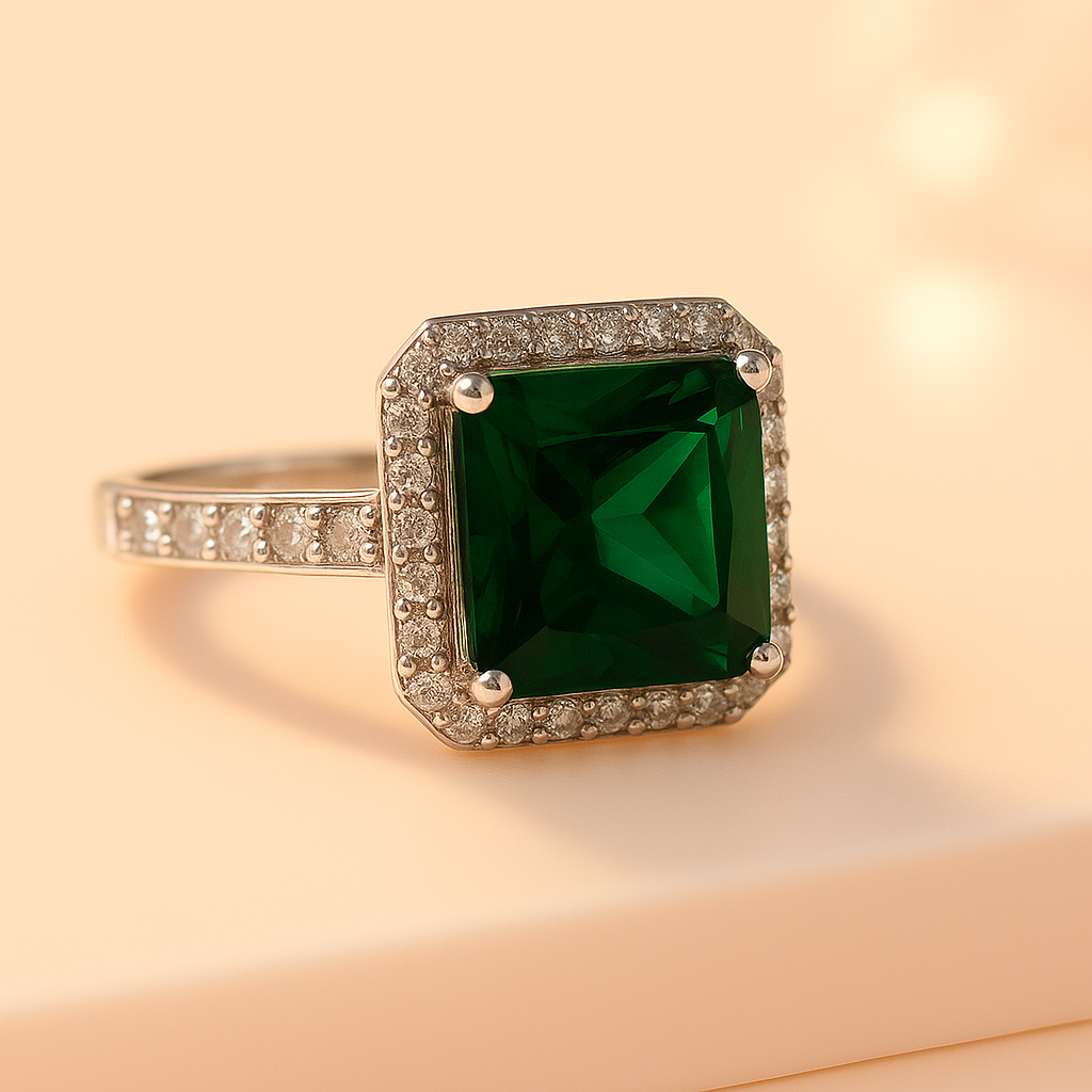 | Center Stone | Princess-Cut Emerald Green CZ |