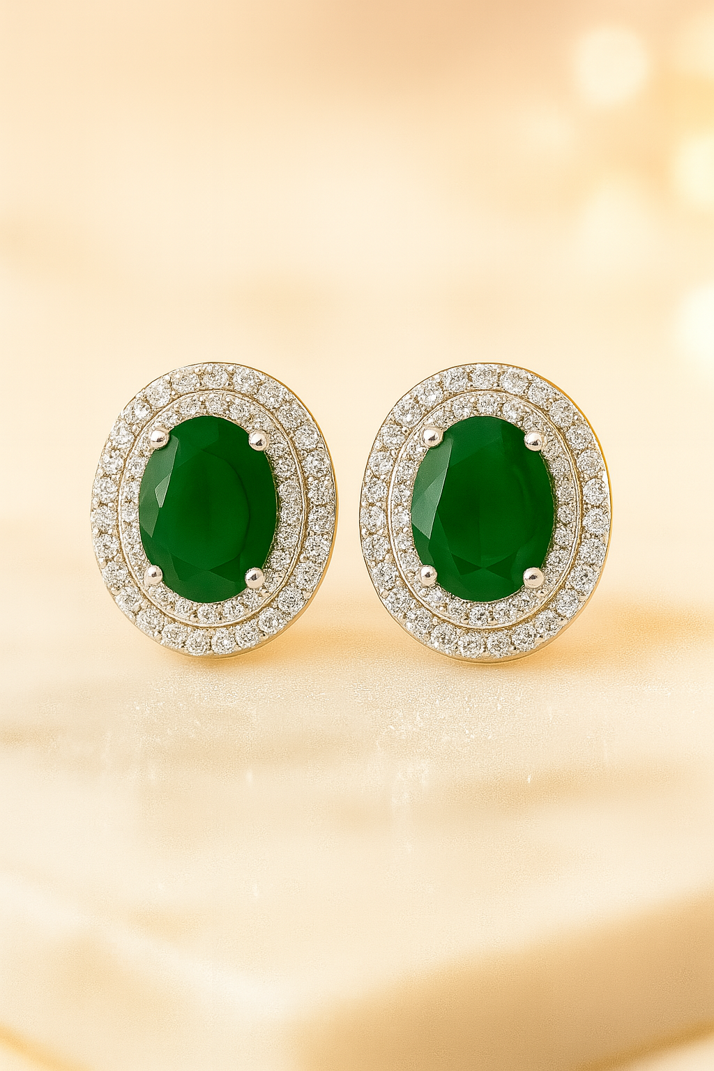 OvaVerde Halo Studs | Oval Green CZ & Diamond Halo