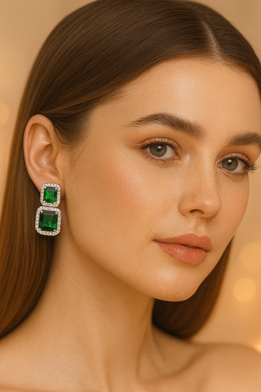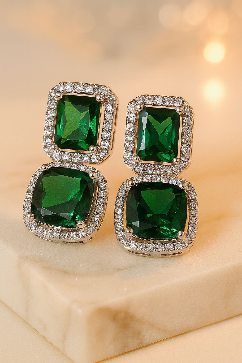 Gemstones: Emerald-green CZ (square & cushion cuts)